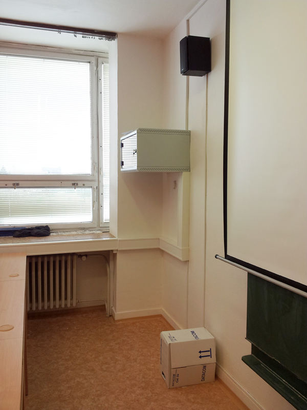 Dále byla realizována montáž plátna a projektoru, díky kterému lze provádět interaktivní výuku.